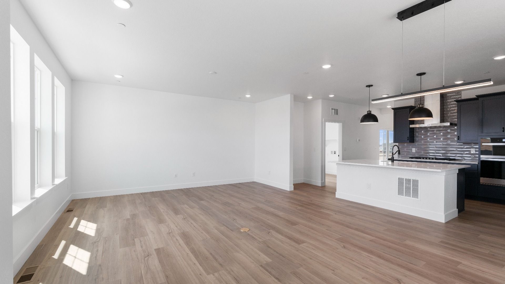 On the main level, enjoy a seamless flow between the great room, casual dining area, and well-appointed kitchen, creating a warm and open space perfect for gatherings or everyday living. A large flex room on the main floor provides the versatility to serve as a home office, playroom, or be converted into a fourth bedroom—ideal for guests or multigenerational living.